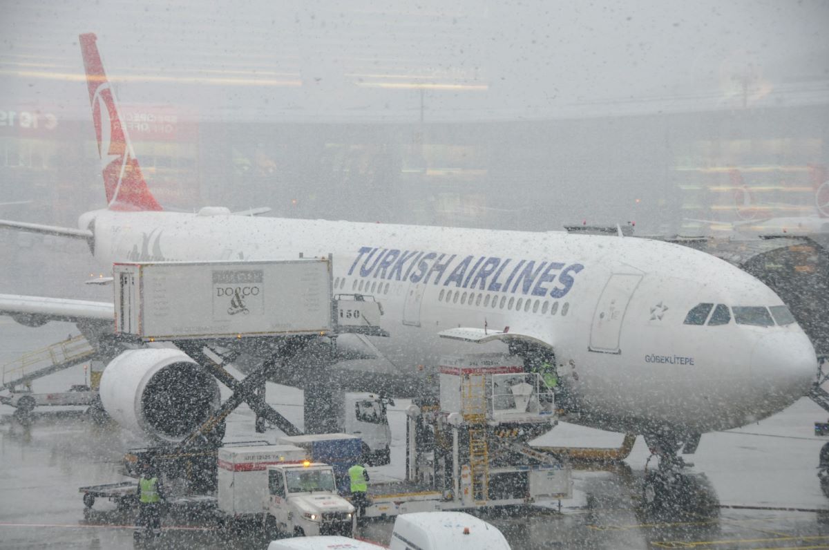 İstanbul Havalimanı’nda uçuşların aksamaması için yoğun çaba harcayan yetkililer, karla mücadele ekiplerini hazır bekletiyor. 24 saat aralıksız karla mücadele eden ekipler, sık sık pistlerde ve uçak park alanlarında kar temizlemesi yapıyor. Bu arada uçaklar ise buzlanmaya karşı alkol karışımı bir sıvı ile yıkanıyor.