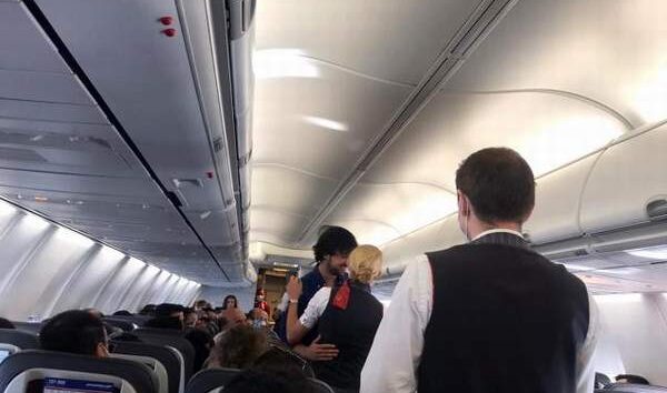 Sevgilisine cebinden yüzüğü çıkartarak yolcuların şaşkın bakışları arasından “Benim evlenir misin” diye sordu. Kısa süren şokun ardından genç hostes, erkek arkadaşına “evet” yanıtını verince uçakta bir anda alkışlar yükseldi. Uçaktaki tüm yolcular genç çifti dakikalarca alkışladı.