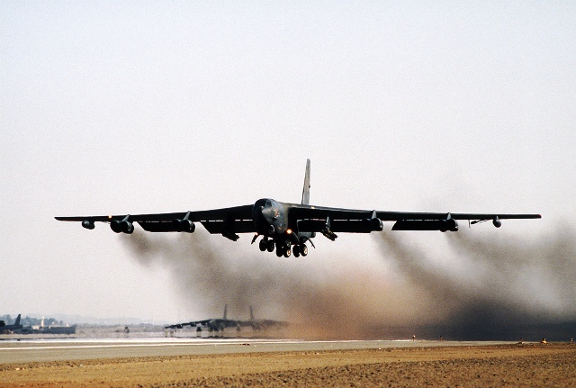B-52 bombardıman uçakları, 48,5 metre uzunluğa ve 56,4 metre kanat açıklığına sahip uzun menzilli ağır bombardıman uçakları olarak biliniyor.