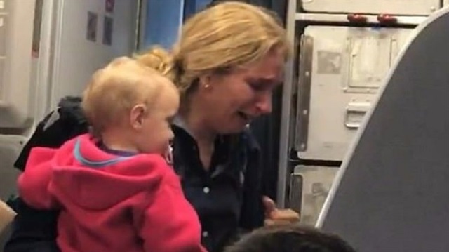 Uçakta kaydedilen görüntülerde ise göz yaşlarına boğulan kadının pusetini geri istediği ve kadınla görevliler arasında tartışma başladığı görülüyor.