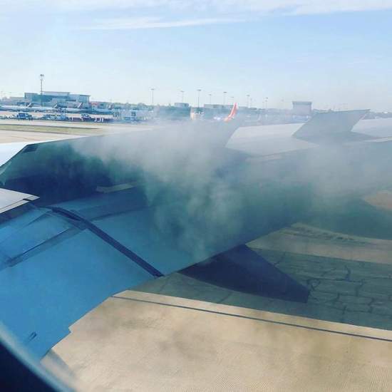 Uçağın inmesi için hazır bekleyen ekipler, siyah dumanlar çıkan kanat bölgesine hızla müdahale etti.