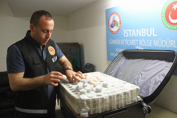 İstanbul Atatürk Havalimanı’nda Vietnam’dan gelen 3 yolcuya ait 3 ayrı valizden 802 adet ejderha tavuğu yumurtası çıktı.