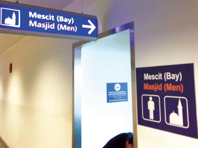 Ama her yıl milyonlarca yabancı yolcunun geçtiği Atatürk Havalimanı’nın dış hatlar terminalinde sadece “Mescid” yazısı vardı.