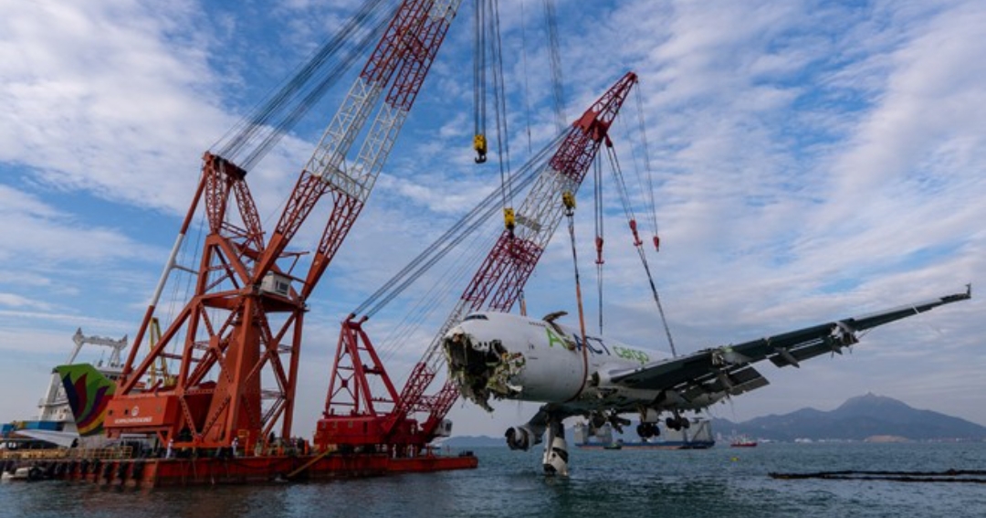 Hong Kong Havalimanı’nda geçtiğimiz hafta pistten çıkarak görevli devriye aracına çarpan ve iki kişinin ölümüne neden olan Air ACT’ye ait Boeing 747-400 tipi kargo uçağının enkazı denizden çıkarıldı.