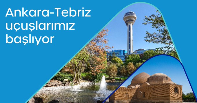 Anadolujet, 31 Ekim 2021 itibarıyla Ankara’dan, İran’ın Doğu Azerbaycan Eyaleti’nin başkenti olan Tebriz’e karşılıklı uçuşlarımız başlıyor.