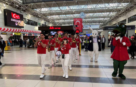 Antalya Havalimanı’nda düzenlenen 23 Nisan Ulusal Egemenlik ve Çocuk Bayramı töreninde; bando, maskotlar ve balonbaz ile 7’den 77’ye her yolcu coşkulu anlar yaşadı.