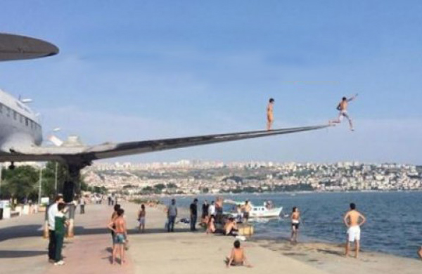 Büyükçekmece sahilindeki 70 yaşındaki ‘C-47’ tipi askeri nakliye uçağının kanatlarının tramplen olarak kullanılmasını önlemek için yapılan çalışmalar sonuç verdi. Kanadın altında denize doğru mini çıkıntı yapıldı, önü bariyer ile çevrildi, denize atlayan kalmadı.