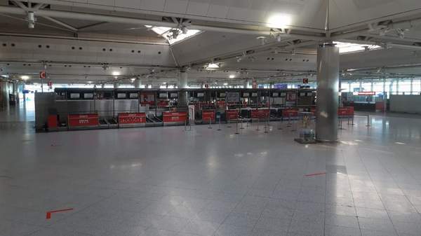 Son uçuşun ardından terminaller de sessizliğe büründü. Son yolcularını uğurlayan havalimanında uçuş bilgi ekranlarındaki boş görüntü de dikkat çekti.
