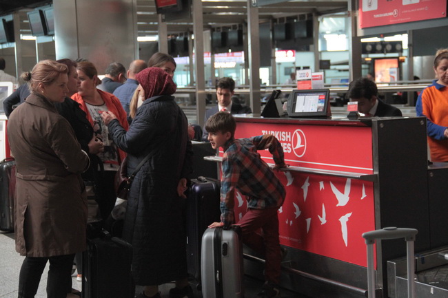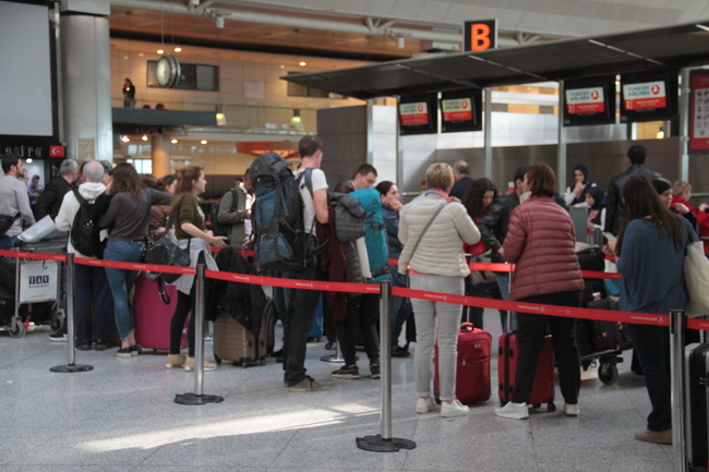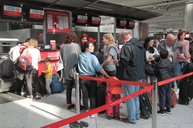 Terminal girişlerinde ve kontuarlarda uzun kuyruk oluştu