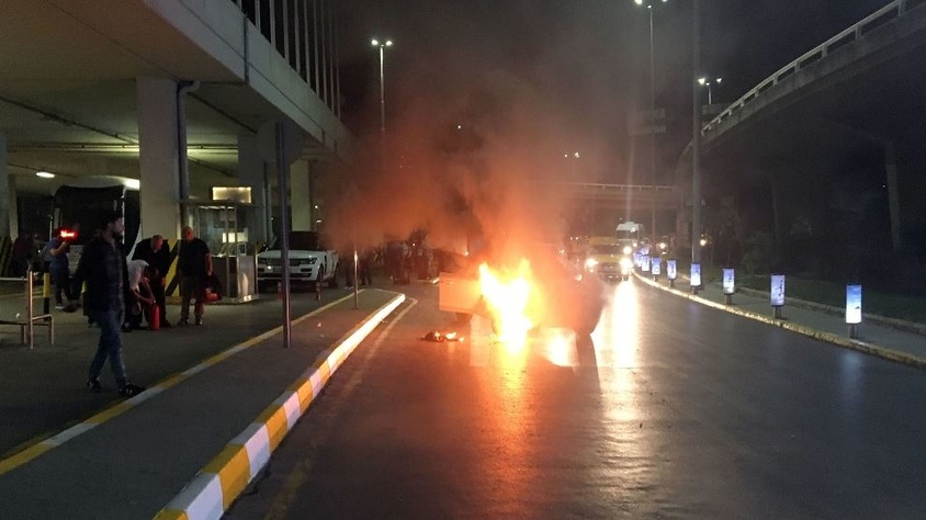 Atatürk Havalimanı İç Hatlar geliş katında saat 22.15 sıralarında terminal önünde park halindeki bir otomobilde yangın çıktı. DHA’nın haberine göre, yanan otomobile ilk müdahaleyi otomobilin sahibi Burhan Erdoğan yangın söndürme tüpüyle yaptı. Daha sonra olay yerine gelen Devlet Hava Meydanları İşletmesi İtfaiyesi gelerek yangını söndürdü.