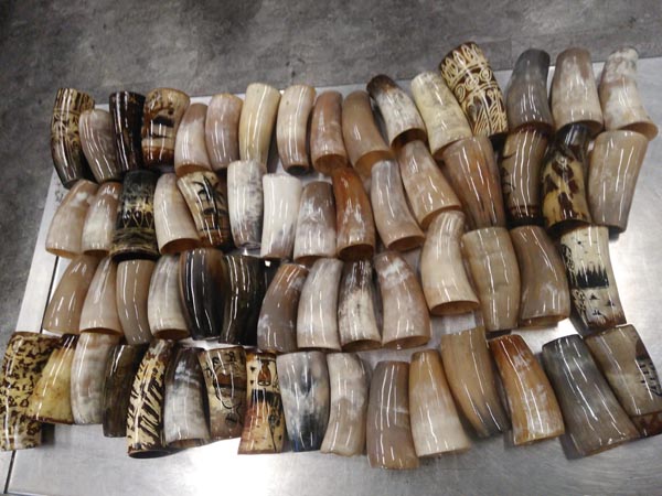 Ticaret Bakanlığı Gümrük Muhafaza ekiplerince Atatürk Havalimanı’nda gerçekleştirilen operasyonda piyasa değeri yaklaşık 900 bin TL olan yüzlerce manda boynuzu ve bunlardan üretilmiş süs eşyaları ele geçirildi.