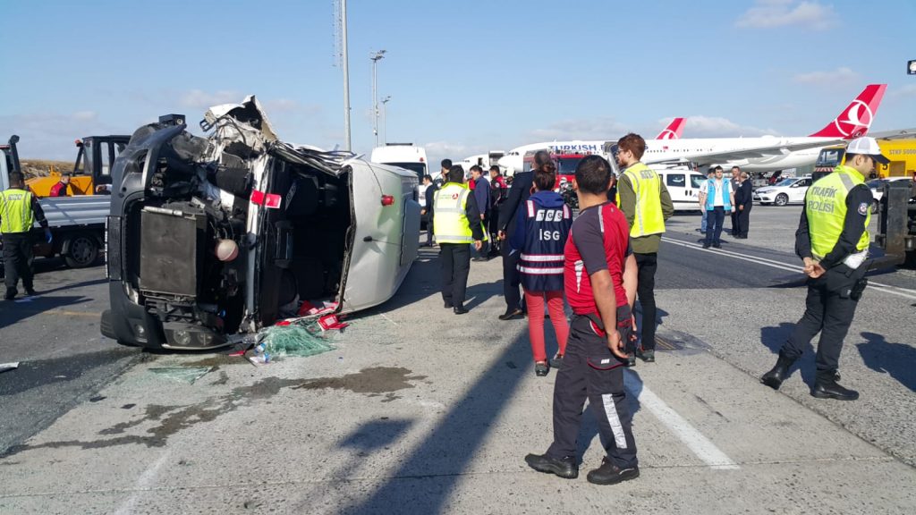 Atatürk Havalimanı’nda bagajları taşıyan araçla, uçak içlerini temizlemeye giden temizlik personelini taşıyan servis aracı kafa kafaya çarpıştı. Apronda meydana gelen kazada ilk belirlemelere göre 9 kişi yaralandı. Yaralılar ambulanslarla Bakırköy Sadi Konuk Eğitim ve Araştırma Hastanesi’ne kaldırıldı.