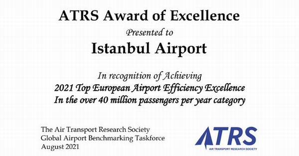 İGA’nın resmi Twitter hesabından yapılan açıklamada ise, “Verimli operasyon kabiliyetimiz, üstün teknolojimiz ve sunduğumuz seçkin seyahat tecrübesiyle sektörünün saygın kurumlarından ödüller almaya devam ediyoruz. Hava Taşımacılığı Araştırmaları Derneği (ATRS) tarafından ‘Avrupa’nın En Verimli Havalimanı’ ödülüne layık görüldük.” ifadelerine yer verildi.