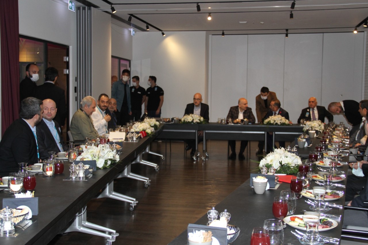 Bakan Karaismailoğlu, İstanbul Havalimanı CEO’su Kadri Samsunlu’nın da katıldığı iftar yemeği sonrası dernek odasında basın mensuplarının gündeme ilişkin sorularını yanıtladı.