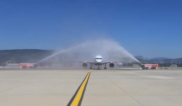 TAV Havalimanları tarafından işletilen Milas-Bodrum Havalimanı’nda Rusya’dan gelen yılın ilk uçuşunu su takıyla karşılandı. Azur Air’in Boeing 757-200 tipi uçağıyla 212 yolcu Moskova’dan Bodrum’a geldi.