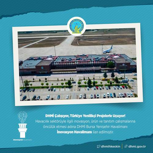 DHMİ Genel Müdürü Hüseyin Keskin sosyal medya hesabından yaptığı açıklamada ”Havacılık sektörüyle ilgili inovasyon, ürün ve tanıtım çalışmalarına öncülük etmesi adına DHMİ Bursa-Yenişehir Havalimanı İnovasyonHavalimanı ilan edilmiştir” ifadelerini kullandı.