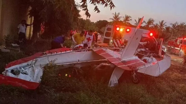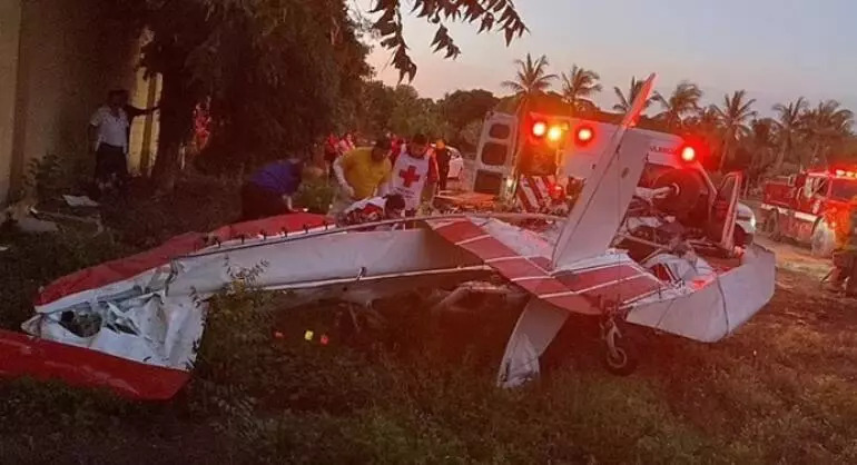 Yerel medyada yer alan haberlere göre, pilotun ani manevrası nedeni ile uçağın kanadı kırıldı, havada yan yatan Uçak parti alanının tam arkasına düştü.