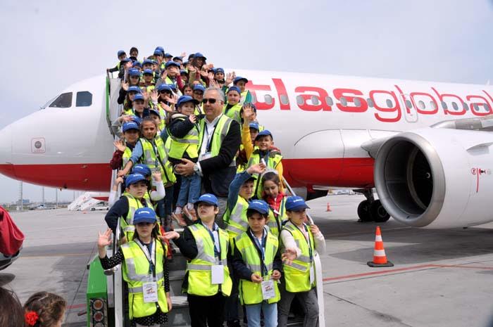 Atatürk Havalimanı apronunda bulunan Havaş yer hizmetleri istasyonunda düzenlenen 23 Nisan Ulusal Egemenlik ve Çocuk Bayramı etkenliğine 70 çocuk katıldı. Atlasglobal Havayolları’nın pak halindeki uçağına binen çocuklar, velileriyle hatıra fotoğrafı çektirdi. Çocuklar, burada havacılık hakkında bilgiler öğrenerek, uçağın çeşitli bölümlerini gezdi.