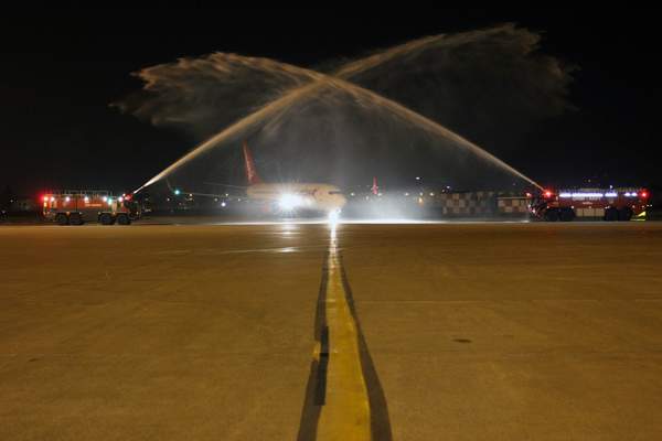 CAI 9026 uçuş koduyla gerçekleştirilen ilk uçuş için DHMI Adana Havalimanı Başmüdürlüğü’nün katılımı ve destekleriyle gerçekleşen özel bir tören düzenlendi. Meydana inen Corendon uçağı su takıyla ıslatılarak karşılandı. Corendon kabin ekibi ise yolculara çiçek hediye etti.