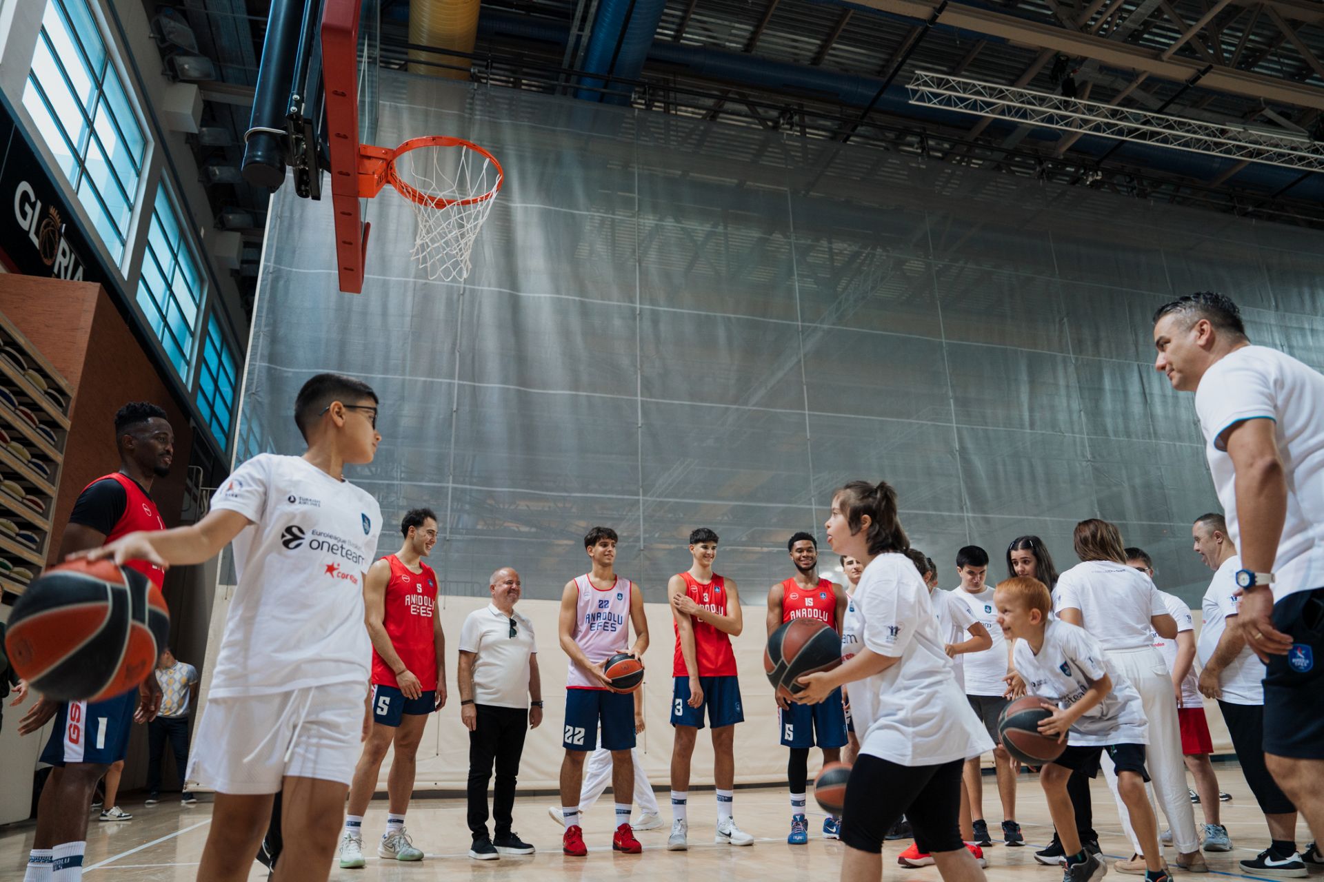 Bu kapsamda Gloria Cup için Antalya’da bulunan Anadolu Efes Spor Kulübü, EuroLeague’in sosyal sorumluluk programı One Team çerçevesinde hayata geçirdiği projenin sponsoru Corendon Turizm Grubu ve ZİÇEV (Zihinsel Yetersiz Çocukları Yetiştirme ve Koruma Vakfı) öğrencileri 11 Eylül tarihinde mavi beyazlıların antrenmanını ziyaret ederek unutulmaz bir gün yaşadı.