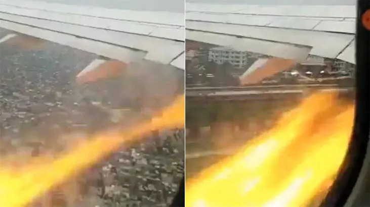 Bir başka yolcu ise, cep telefonuyla uçağın motorundan yayılan alevleri görüntüledi.