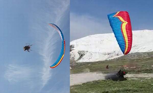 UNESCO Dünya Mirası Listesi’ndeki “beyaz cennet” Pamukkale’de Kocaçukur yakınlarındaki pist alanından paramotorla havalanan Kemal Oturak (32), manevra yaparken kanadın kapanması sonucu paraşütle yere düştü.