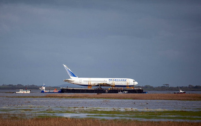 Transaero için uçtuktan sonra yedeğe çekilen Boeing 767, bu kez havadan değil denizden benzersiz ve sıra dışı bir yolculuğa çıktı.