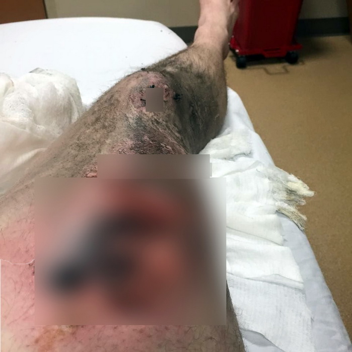 Kazazede, Facebook hesabından yaptığı açıklamada “Cebimdeki e-sigaranın pilinin alev alması sonucu bacağımın üst ve alt tarafı 3. derecede yandı.” dedi ve bacağının fotoğrafını yayınladı.