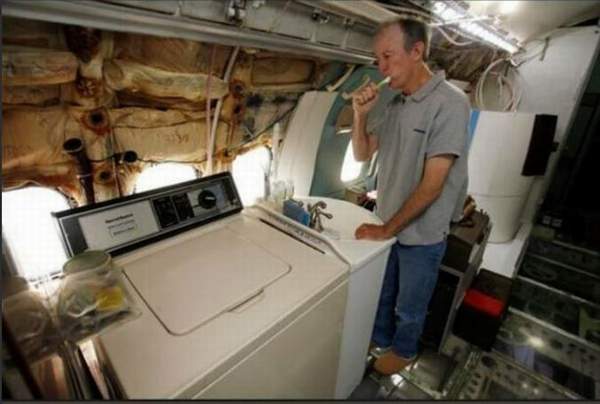 Mühendis olan Bruce Campbell, Portland, Oregon bölgesinde ormanlık arazide 10 dönümlük alana Boeing 727 tipi uçağı ev şeklinde dizayn ederek uçakta yaşamaya başladı.