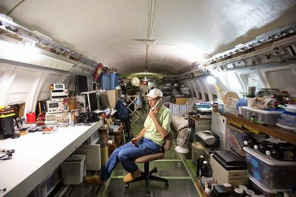 Mühendis olan Bruce Campbell, Portland, Oregon bölgesinde ormanlık arazide 10 dönümlük alana Boeing 727 tipi uçağı ev şeklinde dizayn ederek uçakta yaşamaya başladı.