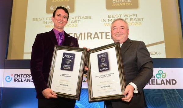 Dünyanın dört bir yanından yolcular Emirates’i Ortadoğu’daki En İyi Wi-Fi ve En İyi Yiyecek & İçecek ödüllerine layık gördü. Ödüller İrlanda’nın başkenti Dublin’de düzenlenen prestijli 2022 APEX Regional Passenger Choice Awards® töreninde havayoluna takdim edildi.