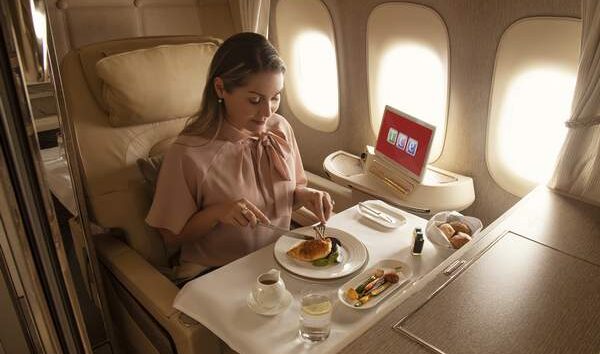 En İyi Yiyecek & İçecek ödülü, Emirates’in yüksek kalite sunan, bölgesel lezzetlerden ilham alan yemek ve kapsamlı içecek menüsüne layık görüldü . Havayolunun ayrıntılara gösterdiği özen sayesinde, her damağa hitap eden 4600’e yakın tariften elde edilen 110’dan fazla yemek, düzenli bir operasyon ile uçağa yükleniyor. Emirates ayrıca en iyi şampanyalar, özel şaraplar ve alkollü içkilerin yanı sıra alkolsüz kokteyller ve içeceklerden, özenle seçilmiş çay ve kahvelere kadar geniş bir seçenek sunan içecek servisine de özel önem veriyor.