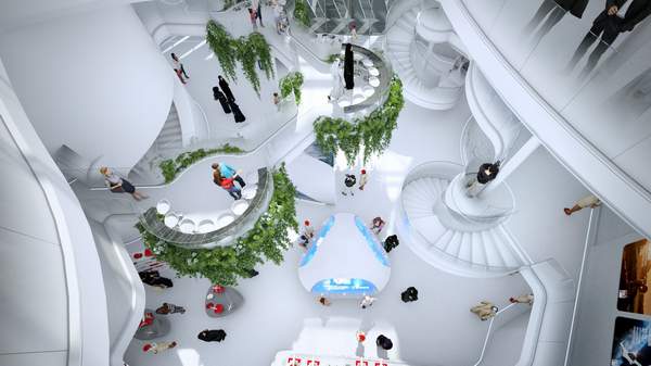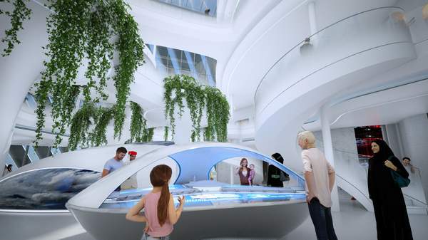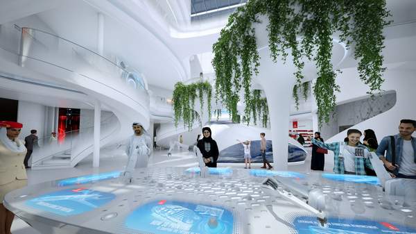 Emirates fuar alanının iç kısmı, doğal gün ışığının mekâna girmesi ve böylece enerji tüketimi sağlanmasına imkân tanıyan, kapalı bir zemin planı içeriyor. Deneyim bölümü, merkez konumda olacak ve ziyaret sırasında etkileşimi teşvik edecek. Emirates fuar alanının ikinci katında, konuşmacı oturumları ve endüstriyel etkinliklere yönelik bir salon bulunacak. Üçüncü katta ise, ziyaretçilerin, doğal ortamlar ve yeşil açık mekanların keyfini sürebilmeleri için tahsis edilmiş bir gökyüzü bahçesi olacak.