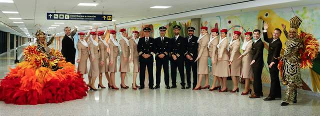 Boeing 777 uçağıyla yapılan EK247 sefer sayılı uçuşu Brezilya ve Arjantin’de sıcak bir karşılamaya sahne oldu. Rio de Janeiro’daki RIOgaleão, havayolu şirketinin şehre dönüşünü geleneksel bir su takı karşılama töreni ile kutladı. Yolcular ve kabin ekibini karşılayan samba dansçıları havalimanı yönetim ekibinin de katıldığı törende eğlenceli bir kültürel performans sergilediler.