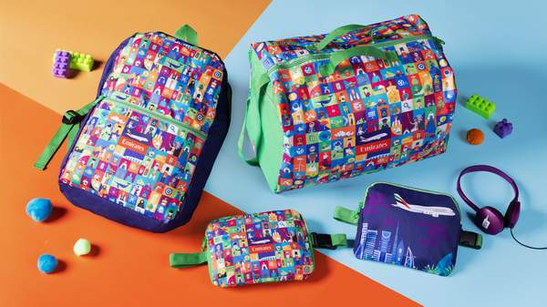 Emirates’in en genç yolcuları için, havayolunun ücretsiz oyuncak çantaları, bebek bakım setleri ve pelüş oyuncakları da geri dönüştürülmüş plastik şişelerden ve diğer sürdürülebilir malzemelerden üretiliyor. Bel çantaları, silindir çantalar ve sırt çantaları, belirli yaş grupları dikkate alınarak tasarlanmış ve %100 geri dönüştürülmüş plastik şişelerden üretilen bir iplikten yapılmaktadır. Her bir Emirates çocuk sırt çantası, 5,5 adet geri dönüştürülmüş plastik şişeden ve her spor çantası 7 adet geri dönüştürülmüş plastik şişeden yapılmaktadır. Emirates çocuk çantalarının üretimi, bugüne kadar 8 milyon plastik şişeyi çöp sahasından kurtardı.