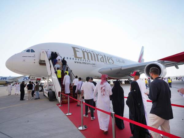 Emirates A380’i, 2022 Bahreyn Uluslararası Havacılık Fuarı’ndaki (BIAS) iki günlük gösterimi boyunca sekiz bine yakın kişi ziyaret etti. Ticaret amaçlı gelen ziyaretçiler, havacılık tutkunları ve fuara ilgi gösteren diğer ziyaretçiler, lüks deri koltuklar, şık ahşap detaylar, geniş koltuk mesafesi, kolay erişilebilir şarj noktaları, gökyüzündeki en büyük ekran ve daha birçok nazik dokunuşla öne çıkan havayolunun yeni Premium Economy Class kabini dâhil en yeni ve ayrıcalıklı ürünlerini inceleme fırsatı buldular.