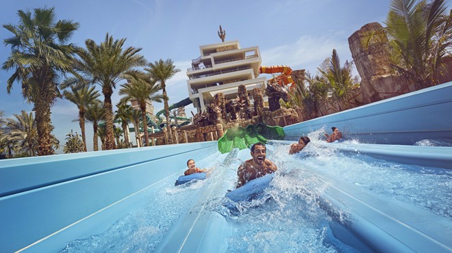 Aquaventure Waterpark, bir kilometreyi geçen genişletilmiş özel sahil şeridi, harika su kaydırakları ve oyun alanları ile ünlü ve rekorları alt üst eden eğlence ve etkinliklere ev sahipliği yapıyor. Etrafı köpek balıkları ve vatoz balıklarıyla çevrili 27,5 metre uzunluğunda şeffaf bir tünel olan Leap of Faith gibi en popüler su kaydıraklarından kayabilir veya park genelinde halatla kayma gibi adrenalin dolu aktiviteleri deneyebilirsiniz. Macera severler etraflarında köpek balıklarıyla güvenli bir şekilde yüzebilir veya dost canlısı vatozları besleyebilirler. Atlantis Aquaventure’ı ziyaret edenler, Poseidon’s Tower, Trident Tower, Splashers Lagoon ve Splashers Cove’un yanı sıra Raging Rapids ve Immortal Falls’ta yetişkenler, çocuklar ve ailelere yönelik 34 farklı gezinti ve etkinliğin keyfini çıkarabilirler.