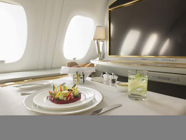 Yeni İlham Kaynakları, Yeni Menüler: Gökyüzünde en iyi fine dining deneyimini tasarlamak ve sunmak için ödüllü şeflerden oluşan bir ekip, birinci sınıf bir catering ekibi ve çok çeşitli tedarikçiler bir araya getirildi. Moqueca sos ve creole pilav ile servis edilen tavada kızartılmış alabalık, portakallı kekikli sos, buharda pişmiş bebek brokoli ve şeker patatesle servis edilen kızarmış ördek göğsü gibi yemeklerin yer aldığı yeni menüler seçili Emirates noktalarında First Class yolcularına sunulacak. Yeni menüler 1 Eylül’de Business ve Ekonomi sınıflarında da sunulacak.