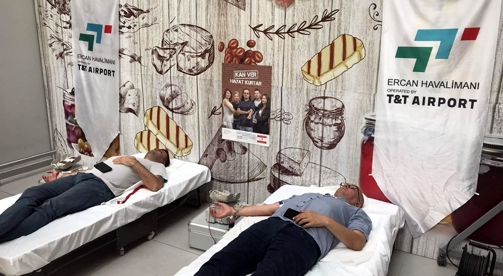 T&T Havalimanı İşletmeciliği’nin Kıbrıs Türk Kızılay’ı işbirliğiyle “Her damla kan, bir can kurtarır” sloganı ile gerçekleştirilen kan bağışı kampanyası yoğun ilgi gördü. Ülkedeki kan ihtiyacına cevap verebilmek amacı ve dayanışma bilinci ile düzenlenen kampanya Ercan Havalimanı (Giden yolcu bölümü) ile Taş yapı İnşaat Şantiye bölümünde gerçekleştirildi.