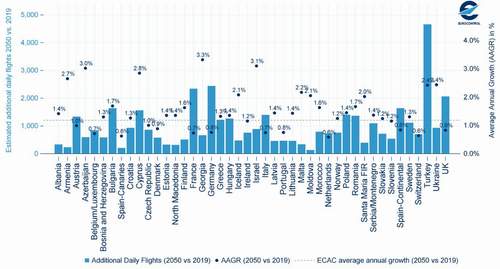Düşük trafik seviyesine sahip ülkelerdeki trafik artışının yüksek olduğu, bu duruma tek istisnanın Türkiye olduğu görüşüne yer verilen raporda, Türkiye’deki  yüksek trafik seviyesine rağmen yıllık yüzde 2,4 büyüme tahminine sahip olduğu, söz konusu büyüme tahmininin ise 2050 yılında günlük ilave 4660 uçuşa denk geldiği ve uçuş sayısının ikiye katlanacağı (+%109) vurgulandı.