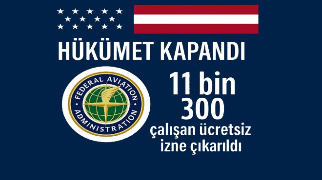 ABD’de hükümetin kapanmasıyla birlikte Federal Havacılık İdaresi FAA, 11 bin 300 çalışanını ücretsiz izne çıkardı. Hayati görevler sürecek, ancak birçok hizmet askıya alındı