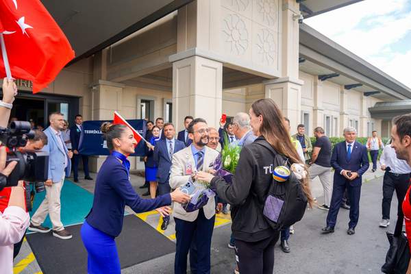 Mesajda ”Avrupa Şampiyonu Filenin Sultanları İGA İstanbul Havalimanı’nda! A Milli Kadın Voleybol Takımımızı bugün havalimanımızda bando ve çiçekler eşliğinde karşıladık. Cumhuriyetimizin 100. yılında bize bu gururu yaşattıkları için tüm takıma, teknik kadroya ve federasyonumuza teşekkür ederiz. Tebrikler” ifadelerine yer verildi.