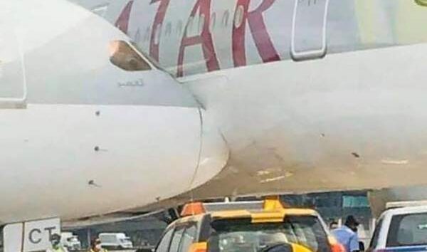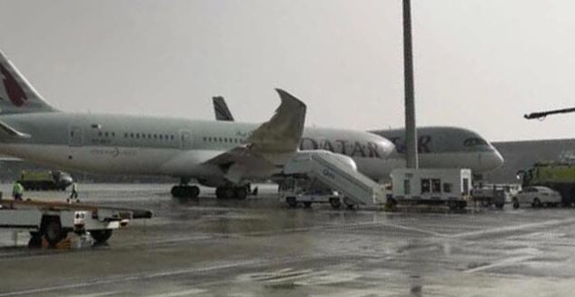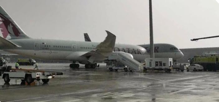 Saatte 110 km hızla gelen fırtına dün Katar Doha Havaalanı’nı vurdu. Şiddetli rüzgar sırasında park halindeki Qatar Airways’e ait Boeing 787 tipi uçak sürüklenerek, yakınında park etmiş haldeki Airbus A350 tipi uçağa çarptı.