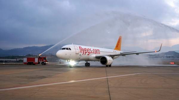 Gazipaşa-Alanya Havalimanı Pegasus Havayolları’nın Ukrayna’nın başkenti Kiev’den gerçekleştirdiği ilk uçuşu törenle karşıladı.