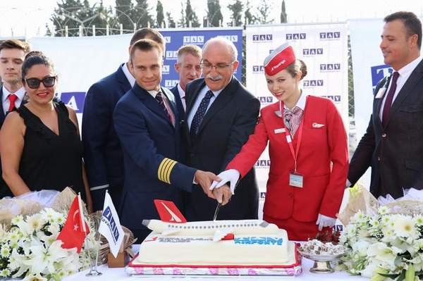 Uçak personeli ile pasta kesilmesinin ardından karşılama töreni sona erdi.