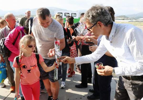 Rusya’dan genel yolculara Gazipaşa çileği ikram edildi. Gazipaşa Belediye Başkan Vkili Mustafa Avcı ve Alanya Belediye Başkan Yardımcısı Ali Yenialp ile Havalimanı yönetimi uçak personelini çiçekle karşıladı.