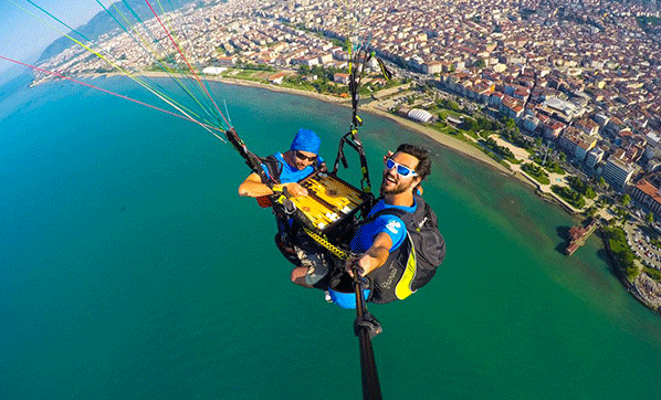 Altınordu ilçesinde Kadir Mert ile Tunahan Korucu, kentin “seyir terası” olarak adlandırılan Boztepe’ye çıkarak paraşütle tandem uçuşu (pilot ve yolcuyla yapılan uçuş) gerçekleştirdi.
