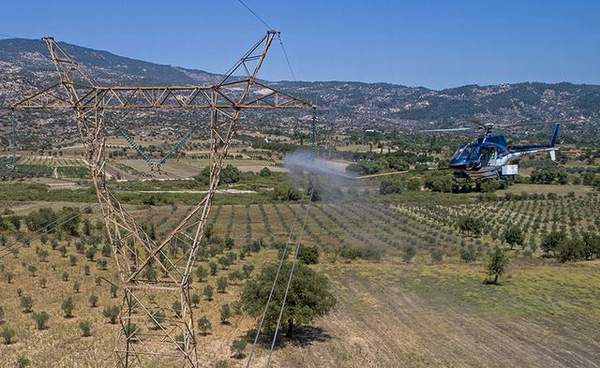 Geçen sürede toz, kum, kimyasal atıklar, tarımsal ilaçlar, deniz tuzu gibi nedenlerle kirlenen ve iletim sisteminin performansını azaltan izolatörlerin temizliği, helikopterden sıkılan saflaştırılmış suyla yapılıyor.