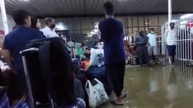 Hartum Uluslararası Havaalanı’nın giden yolcu kapısını da su bastı. Bavulları sular altında kalan vatandaşlar zor anlar yaşadı.
