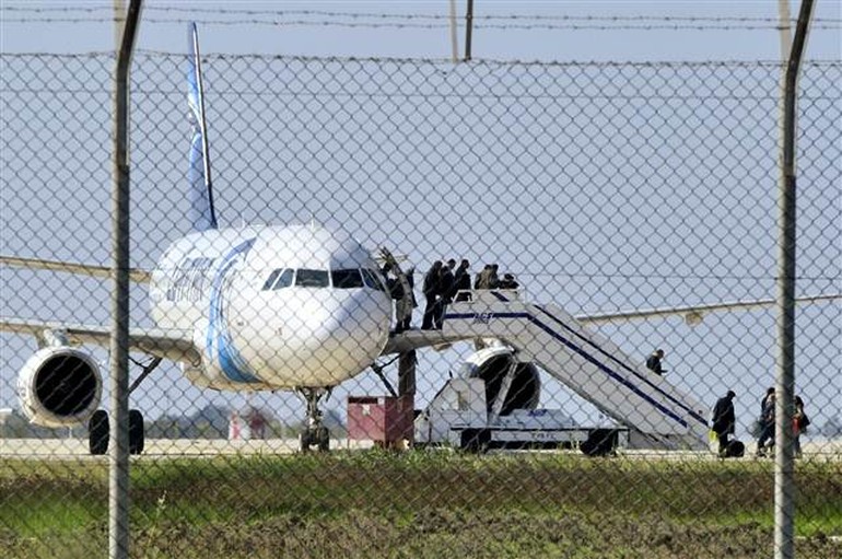 EgyptAir’e a ait yolcu uçağı, Mısır’ın İskenderiye şehrinden başkent Kahire’ye giderken kaçırıldı. Hava korsanı, saatler süren pazarlık sonucunda, kaptan pilot dahil dört mürettebat ve üç yolcu dışındakileri serbest bıraktı.